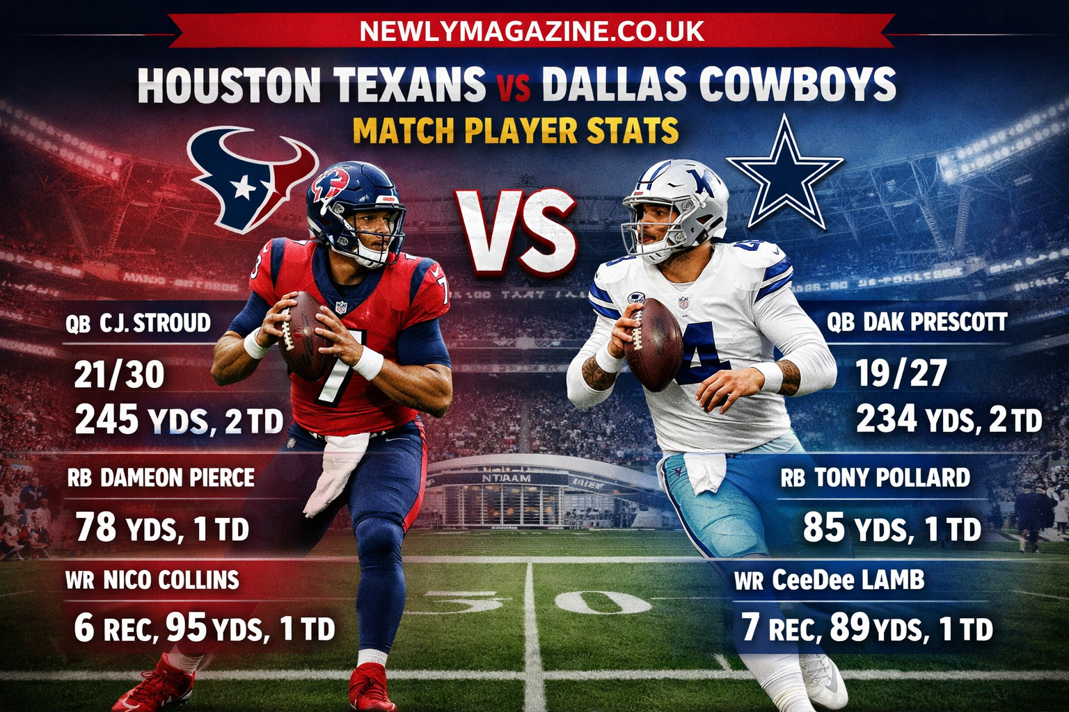 When analyzing the Houston Texans vs Dallas Cowboys match player stats, several comparisons stand out: